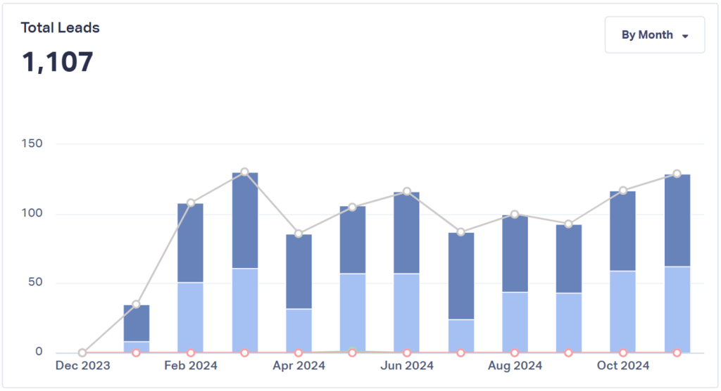 A home services business achieved 1,100+ leads through our PPC campaigns, including a mix of phone calls and form fills. Consistent growth and high-quality leads drove significant revenue and customer expansion.